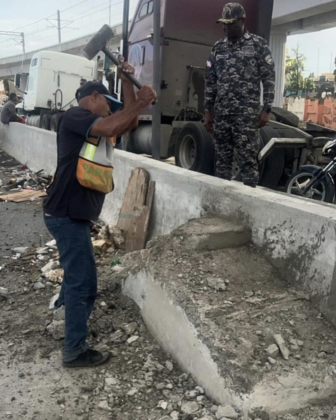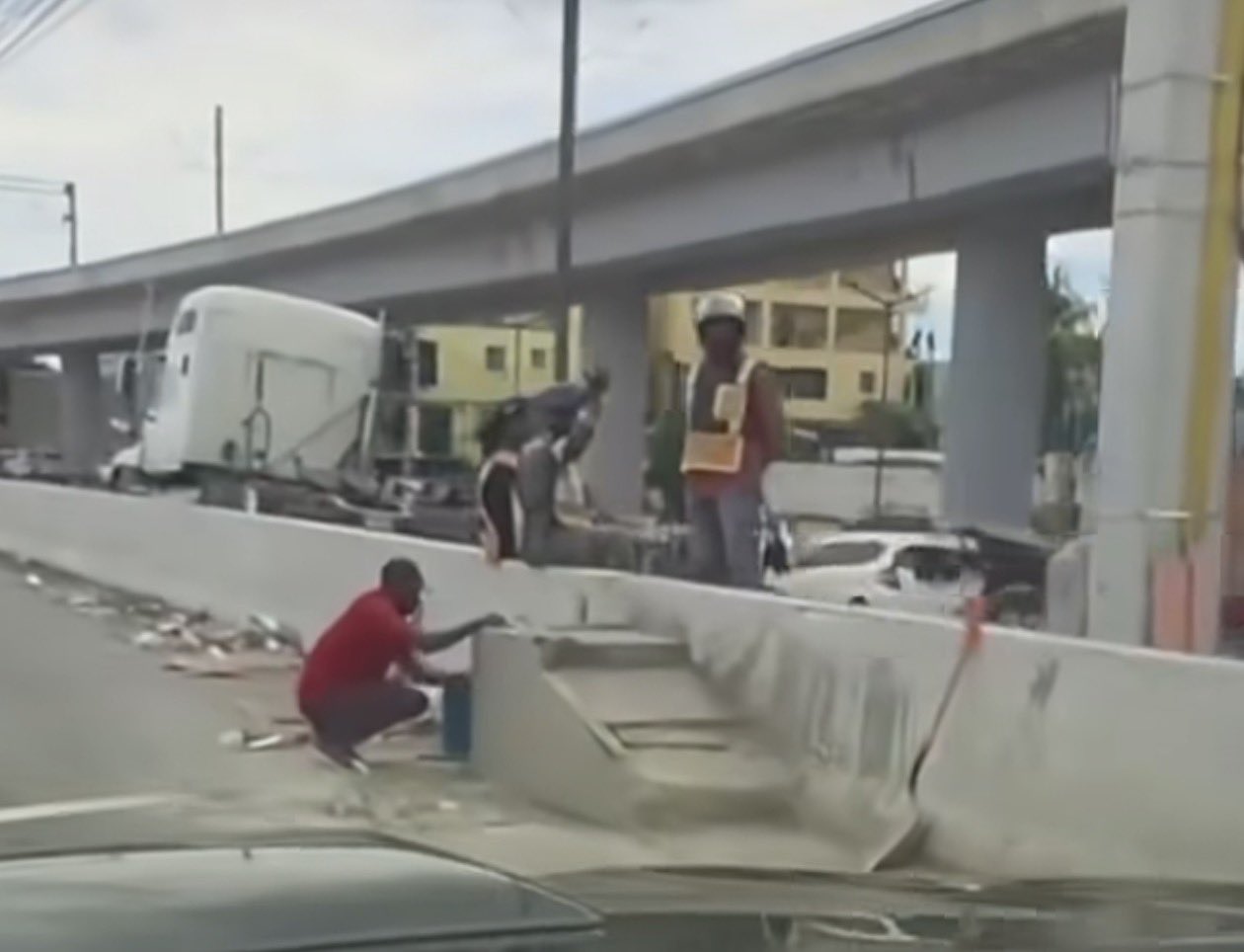 Ciudadanos han denunciado y capturado en video la insólita construcción de un «escalón» de cemento sobre la valla o muro divisorio de la Autopista Duarte. El escalón fue instalado en plena vía, en una zona de alto tránsito.