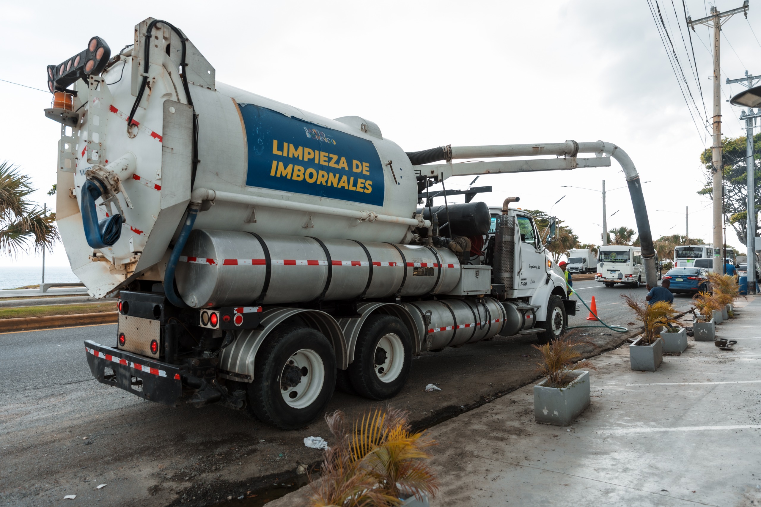 Los camiones succionadores y brigadas de barrido y cuneteo han sido desplegados en los puntos críticos de la capital, para aminorar los efectos de las lluvias.
