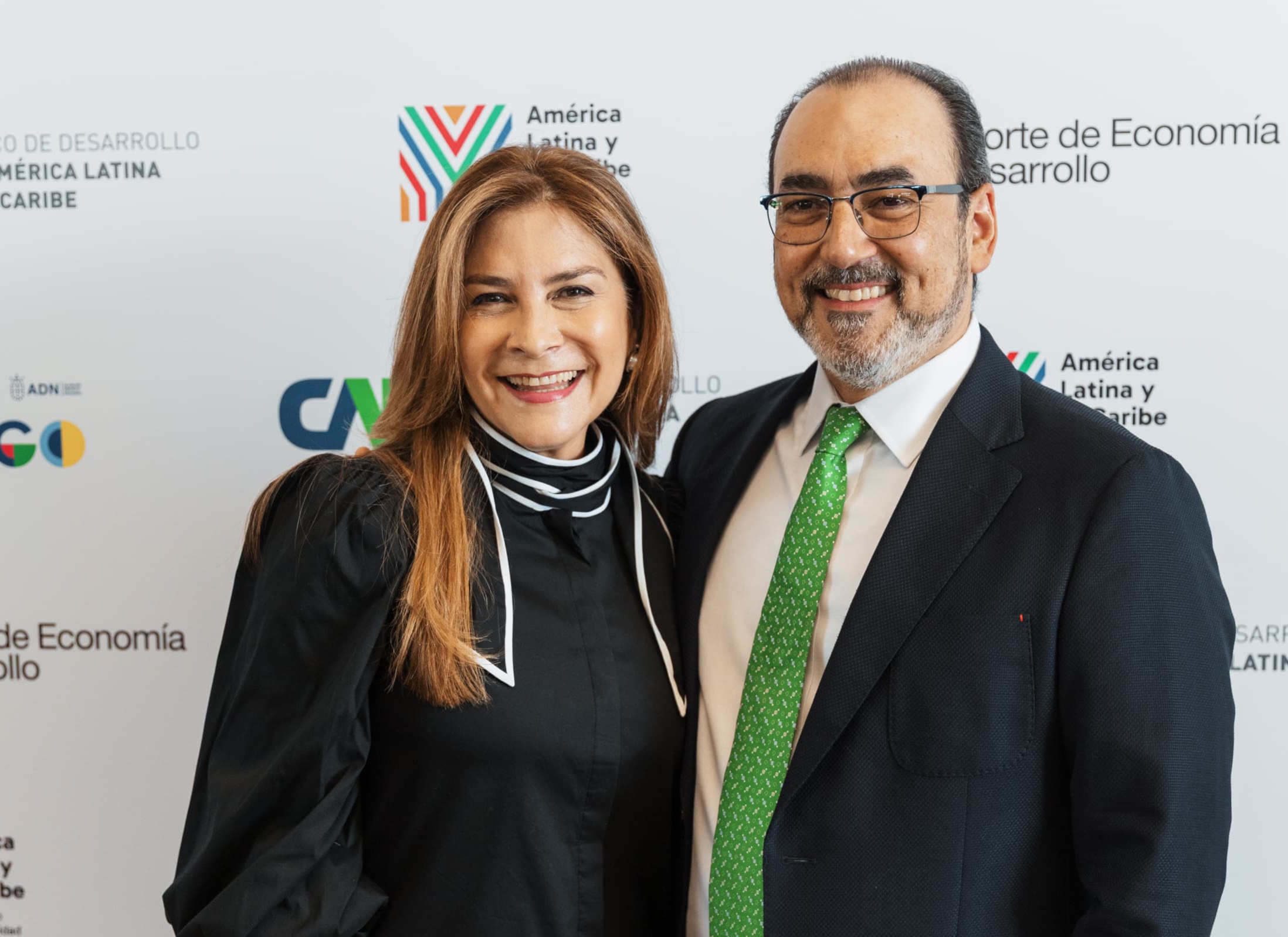 El presidente ejecutivo del Banco de Desarrollo de América Latina y el Caribe, Sergio Díaz-Granados, reconoció el liderazgo de Carolina Mejía durante la presentación del Informe de Economía y Desarrollo del CAF.