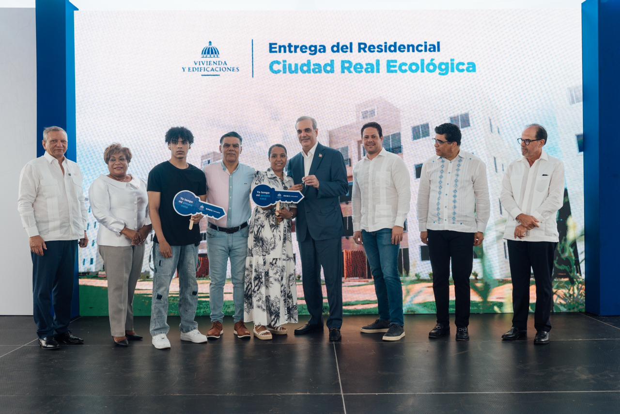 El presidente de la República, Luis Abinader, junto al ministro de Vivienda y Edificaciones (MIVED), Carlos Bonilla, encabezó este domingo la entrega de 488 nuevos apartamentos en el Residencial Ciudad Real Ecológica, ubicado en el muncipio Santo Domingo Este.