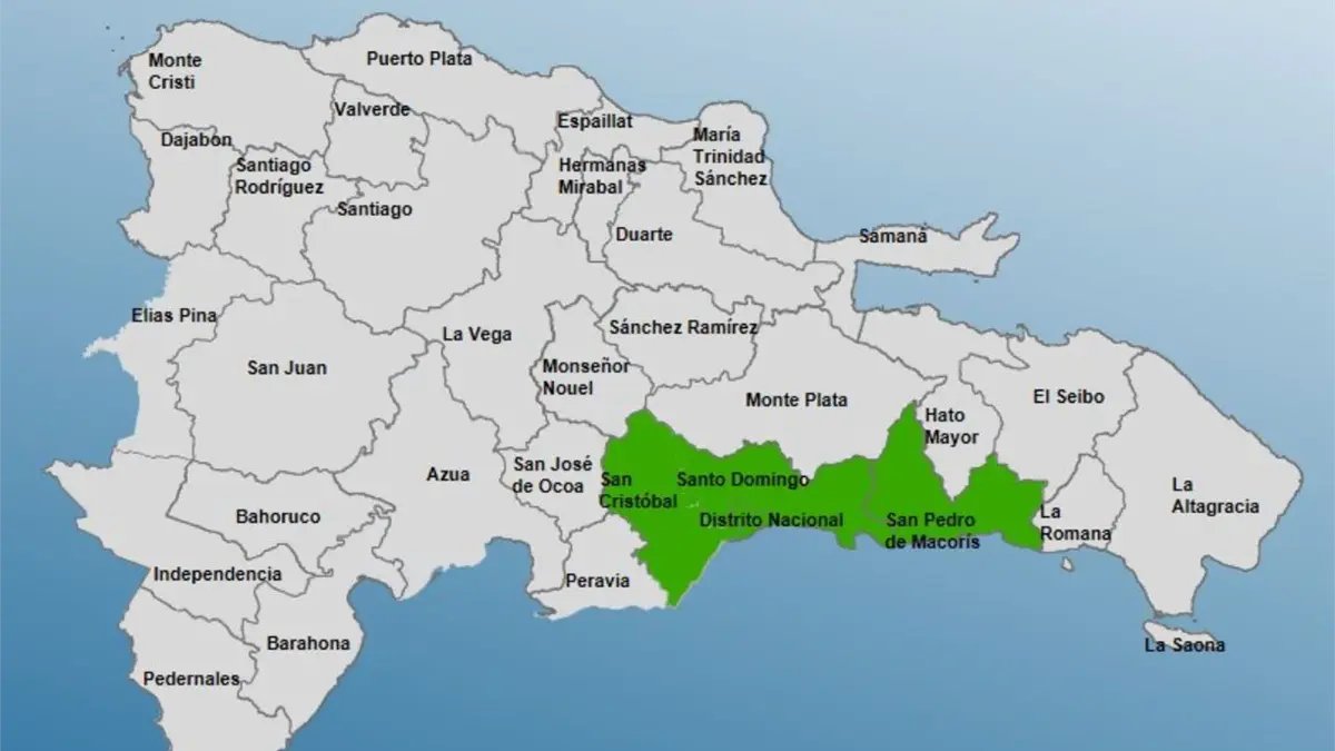 Las provincias bajo alerta verde son San Cristóbal, Santo Domingo, San Pedro de Macorís y el Distrito Nacional