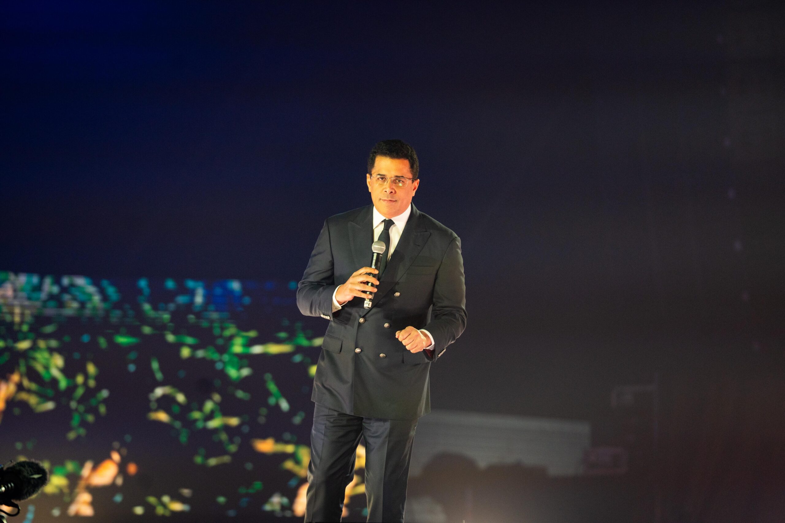 El ambiente del evento reforzó el carácter simbólico del homenaje: desde la explanada del Teatro Real iluminada con los colores de la bandera dominicana, hasta una escenografía interior inspirada en la piedra larimar.