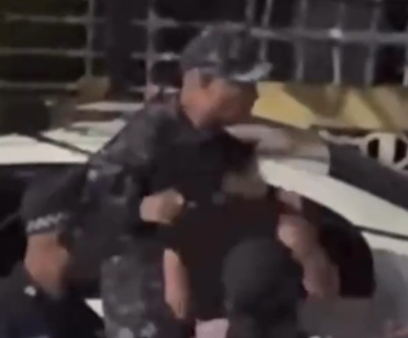En las imágenes se observa claramente cómo el oficial la fuerza a moverse y luego le hala el pelo, provocando que la mujer caiga al pavimento de forma brusca.